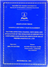 Factors affecting channel switching and evaluation of the operation of export full container load handling services by sea at Prefer Logistics Co., ltd : Graduation Thesis Major Logistics and Supply Chain management / Nguyễn Thị Ngọc Tuyền; Vo Cao Vinh Supervisor Ho Chi Minh City : Nguyen Tat Thanh University, 2024 56 p. : Table; Chart ; 29 cm. Ký hiệu phân loại (DDC): 387.16 This study aims to explore the implementation of macro factors affecting channel switching and evaluate the operation of export full container load (FCL) handling services by sea at Prefer Logistics in 2024. By examining how macroeconomic factors influence customs processes and analyzing their impact on operational efficiency, this research seeks to provide actionable insights for enhancing service quality, reducing costs, and improving competitiveness in the increasingly complex landscape of international trade logistics. Through a combination of qualitative and quantitative analysis, the study will also highlight key areas for improvement and strategic recommendations for adapting to macroeconomic changes effectively.The topic aims to introduce an overview of Prefer Logistics Co., Ltd. and evaluate the organization and execution of the export containerized cargo handling by sea and factors affecting channel switching Based on these analyses, the topic will propose several solutions and recommendations to enhance the effectiveness of the company's export of containerized cargo by sea.